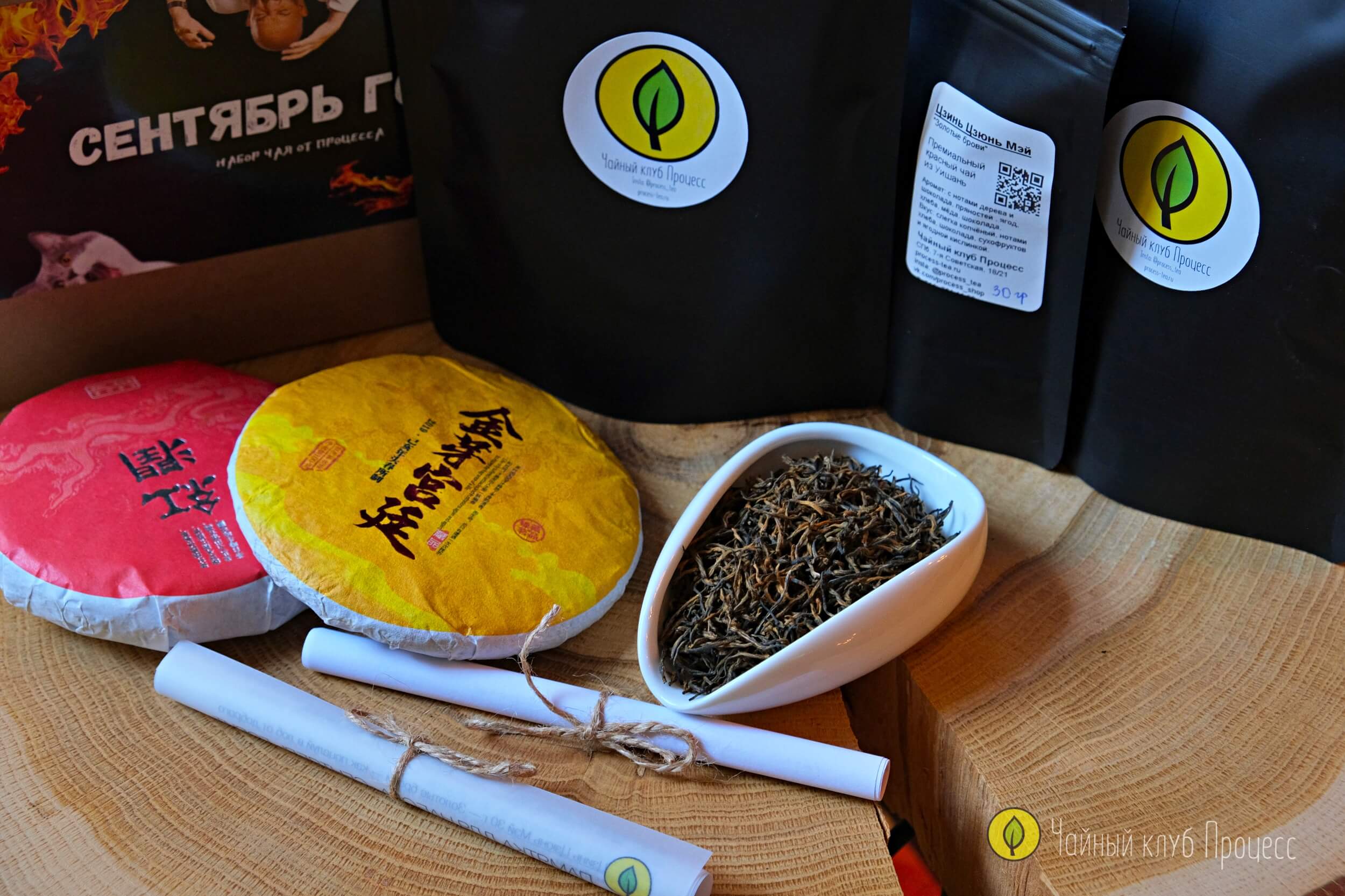 - Цзинь Цзюнь Мэй (30 г) — знаменитый красный чай из почек, сладкий и тонкий, с нотами мёда, сухофруктов и лёгкой дымки.