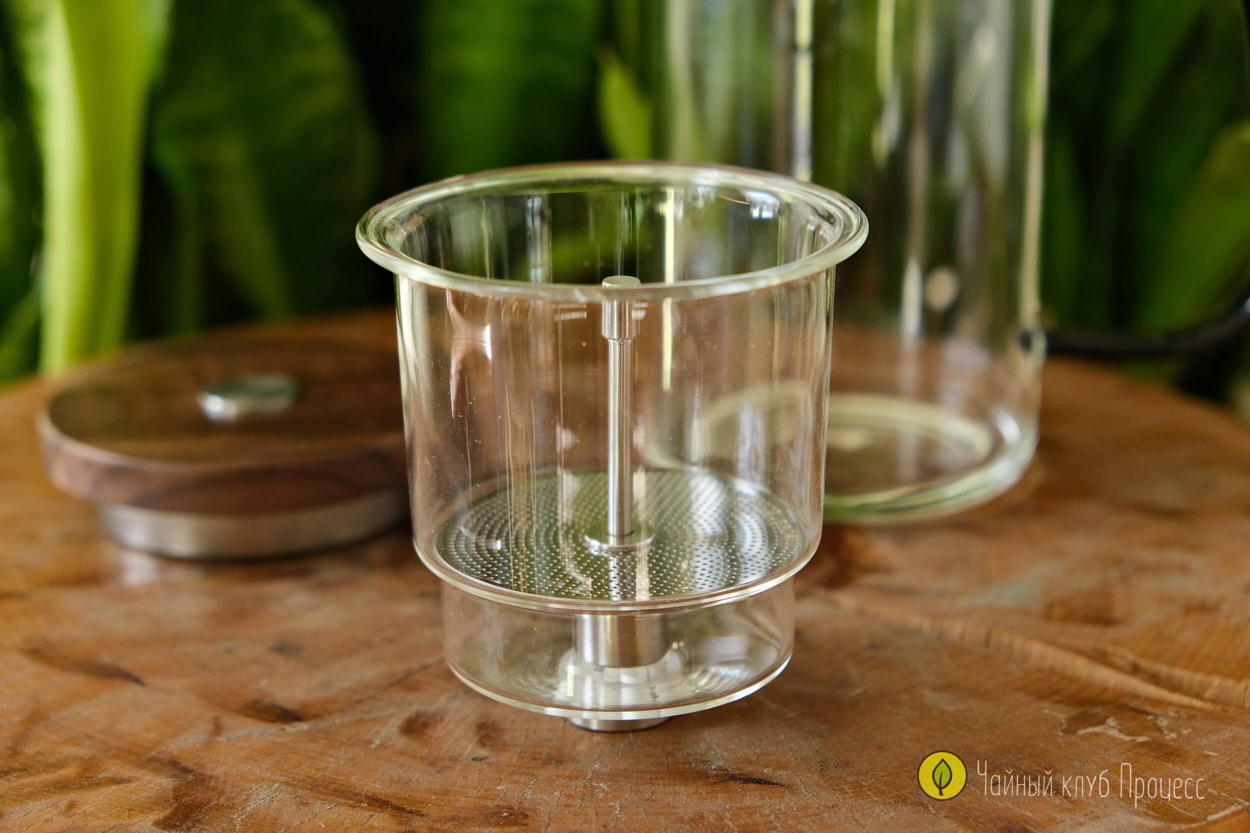 Прочный и лаконичный типот из жаростойкого боросиликатного стекла — прозрачный, как утренний свет. Верхняя колба снабжена металлическим фильтром тонкой работы: чай заваривается равномерно, без мелкой пыли и осадка, а при нажатии кнопки настой мягко перетекает в нижний отсек.