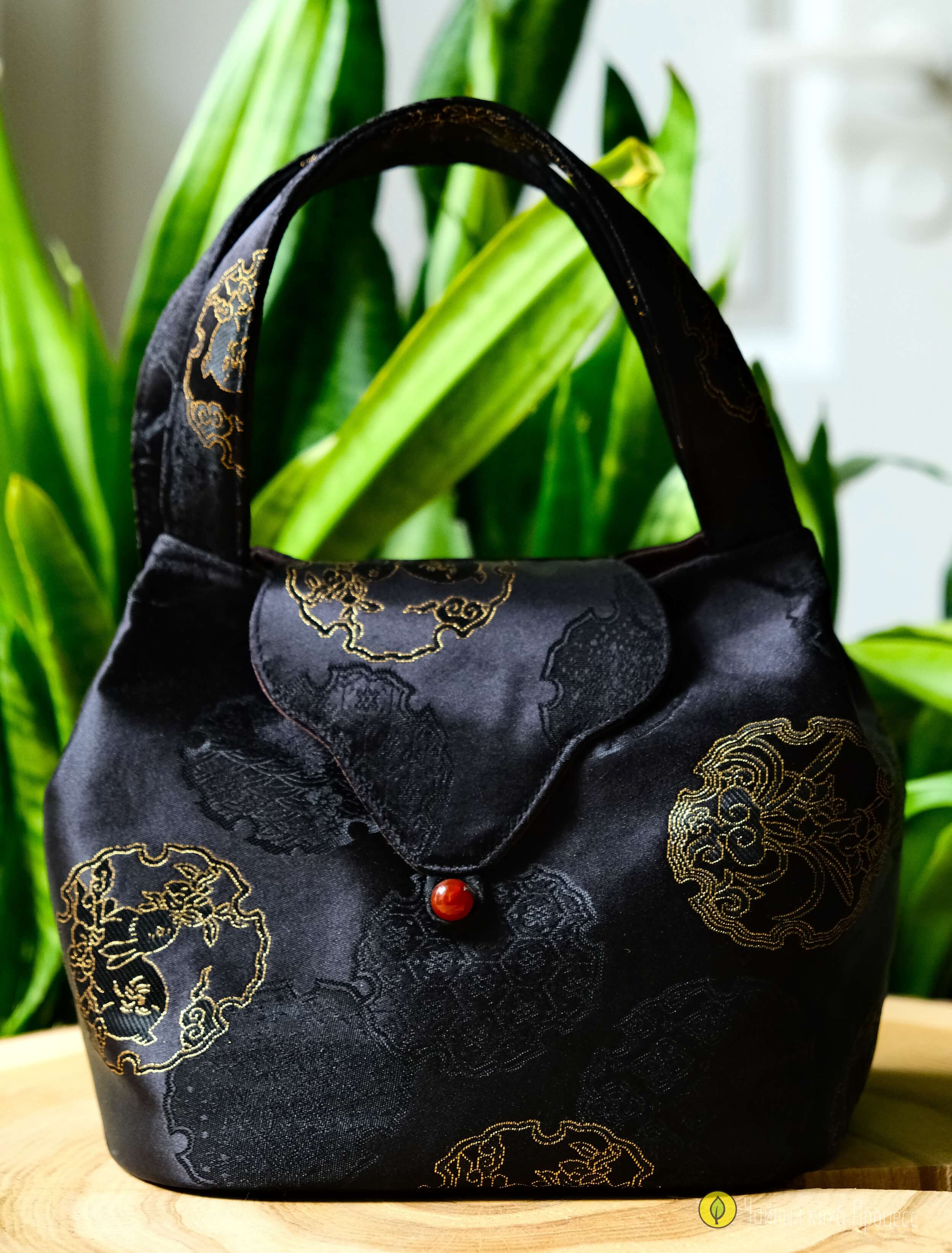 Удобная и плотная сумка для переноски чайной посуды. Внутри — съёмный мягкий вкладыш с тремя отделениями для чайника, гайвани, пиал и чахэ. Снаружи — жаккардовая ткань с чёрно-золотым узором, внутри — хлопковая подкладка. Сумка держит форму, легко закрывается на шнурок и пуговицу. Отлично сочетается с сумкой «Тень золота».