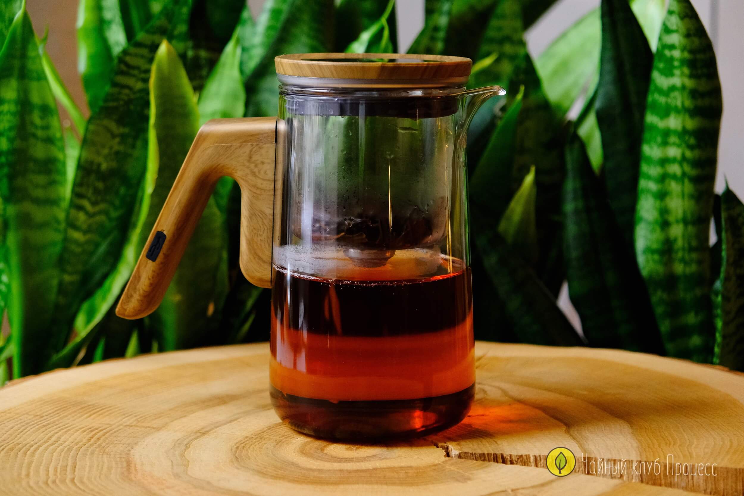Полностью стеклянный внутренний резервуар красиво раскрывает цвет настоя — от светлой зелени до янтаря и тёмной меди. Автоматический фильтр отделяет лист от напитка, чтобы настой выходил чистым и гладким, без крошки и лишней мутности. Лаконичный минималистичный силуэт выглядит дорого и уместно как в домашнем сетапе, так и в клубной подаче.